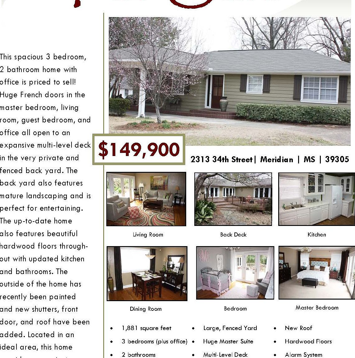 2313 34th St Meridian, MS 39305