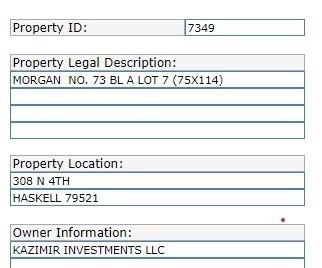 Owner Profile for 308 N 4th St Haskell, TX 79521
