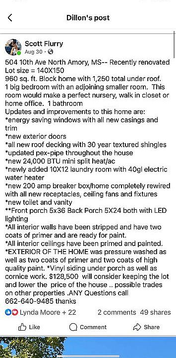 Owner Profile for 504 10th Ave N Amory, MS 38821