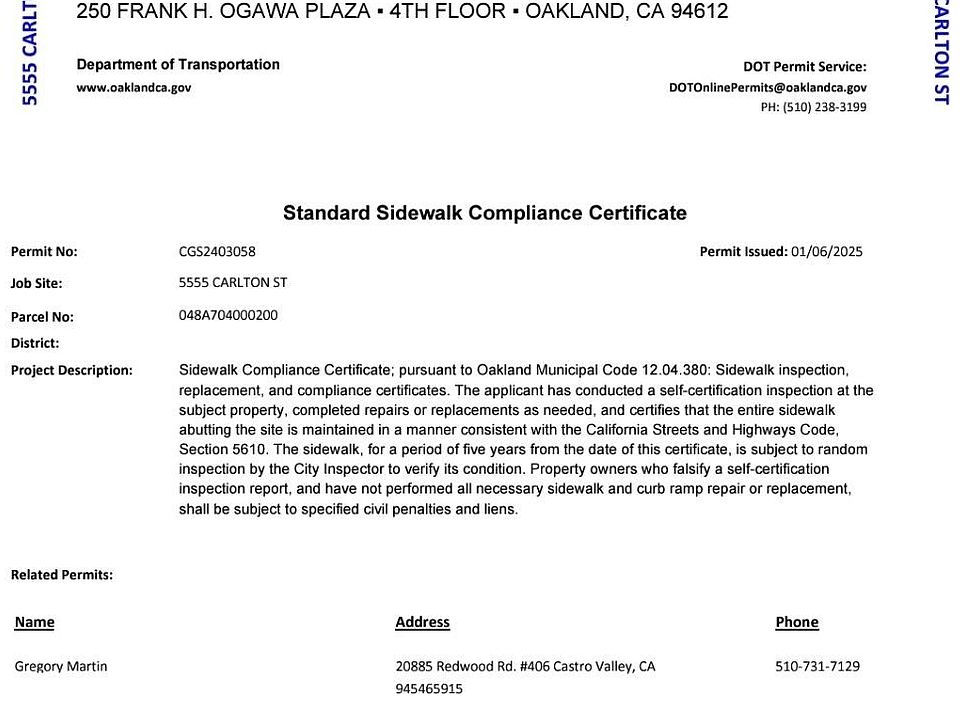Owner Profile for 5555 Carlton St Oakland, CA 94618