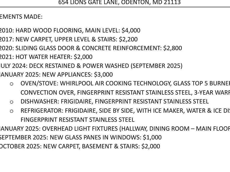 Owner Profile for 654 Lions Gate Ln Odenton, MD 21113