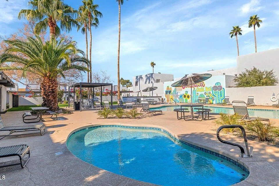 This great property at 8574 E Indian School Rd Unit F is owned by an absentee owner and is valued at $228,734. This means that it’s owned by someone who lives at a different address, most likely a landlord. Depending on the owner’s financial situation, you may be able to purchase this property for below-market value.