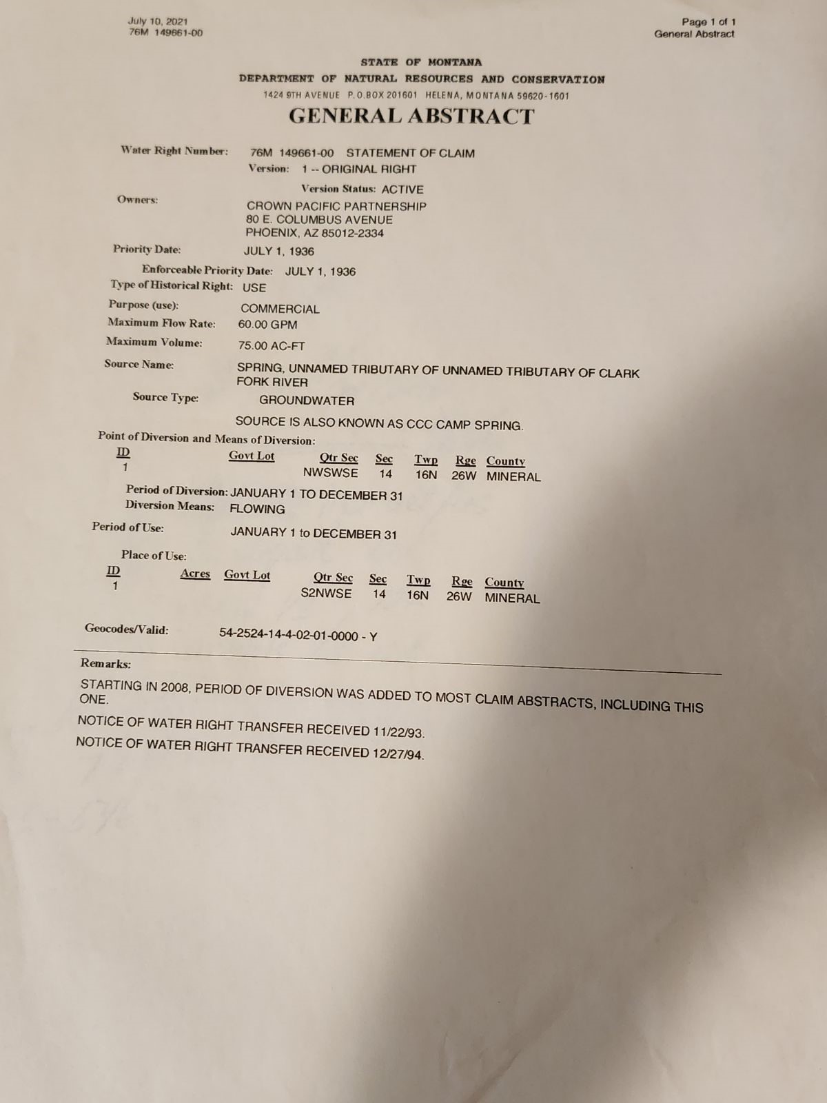 Owner Profile for Nhn Diamond Match Rd Superior, MT 59872